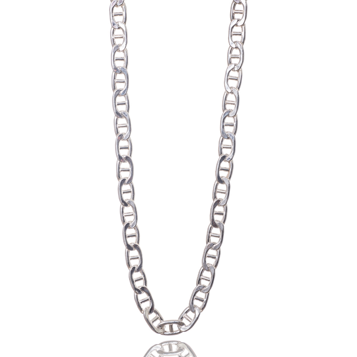 Αλυσίδα τύπου θήτα ανδρική, πλάτους 9.9 mm κατασκευασμένη από ασήμι 925 χωρίς επιμετάλλωση. Ο χαρακτηριστικός της σχεδιασμός αποτελείται από επίπεδους, ομοιόμορφους συνδέσμους που ενώνονται αρμονικά, δημιουργώντας ένα κλασικό και διαχρονικο ασημένιο κόσμημα πλήρους βάρους, με διαμανταρισμένη φαρδιά επιφάνεια υψηλής αντοχής και στιβαρή και κομψή εμφάνιση.