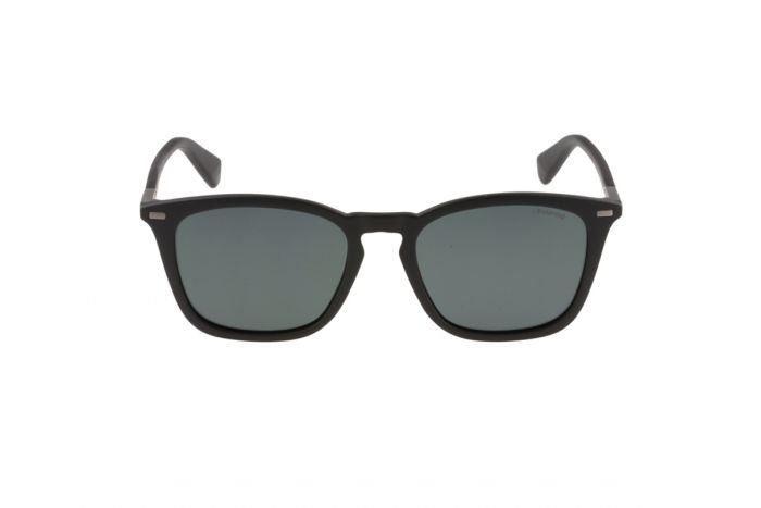 Γυαλιά ηλίου Polaroid ανδρικά από πλαστικό σκελετό χρώματος μαύρο με μαύρους βραχίονες. Οι φακοί είναι γκρι polarized.