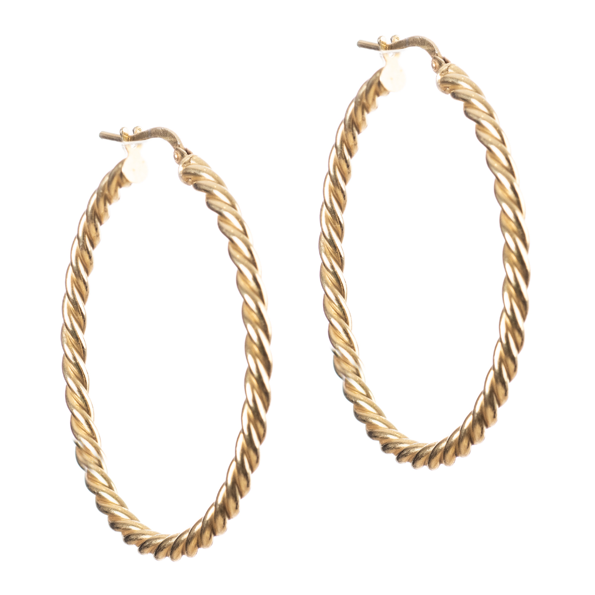 Σκουλαρίκια κρίκοι κατασκευασμένοι από επιχρυσωμένο Κ14 ασήμι 925 σε μεγάλο μέγεθος. Ευκολοφόρετοι φέρουν κούμπωμα ασφαλείας.
