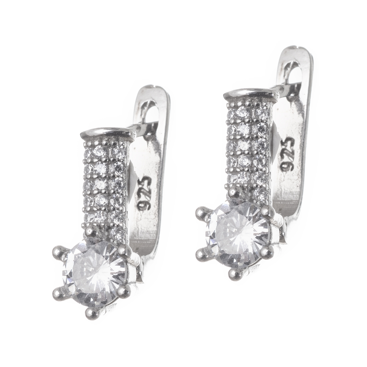 Τα σκουλαρίκια είναι κατασκευασμένα από ασήμι 925 επιροδιωμένο και διαθέτουν έναν κεντρικό, στρογγυλό λευκό λίθο ζιργκόν , που συγκρατείται με έξι δόντια, προσδίδοντας μια κλασική και κομψή εμφάνιση. Το επάνω μέρος της βάσης του σκουλαρικιού είναι διακοσμημένο με μικρά λευκά ζιργκόν, προσφέροντας επιπλέον λάμψη και πολυτέλεια στο σχέδιο και κλείνουν με κούμπωμα ασφαλείας. Το διακριτικό τους στυλ τα καθιστά κατάλληλα για καθημερινή χρήση αλλά και για πιο επίσημες περιστάσεις, ενώ το ασήμι 925 προσφέρει ποιότητα και ανθεκτικότητα.