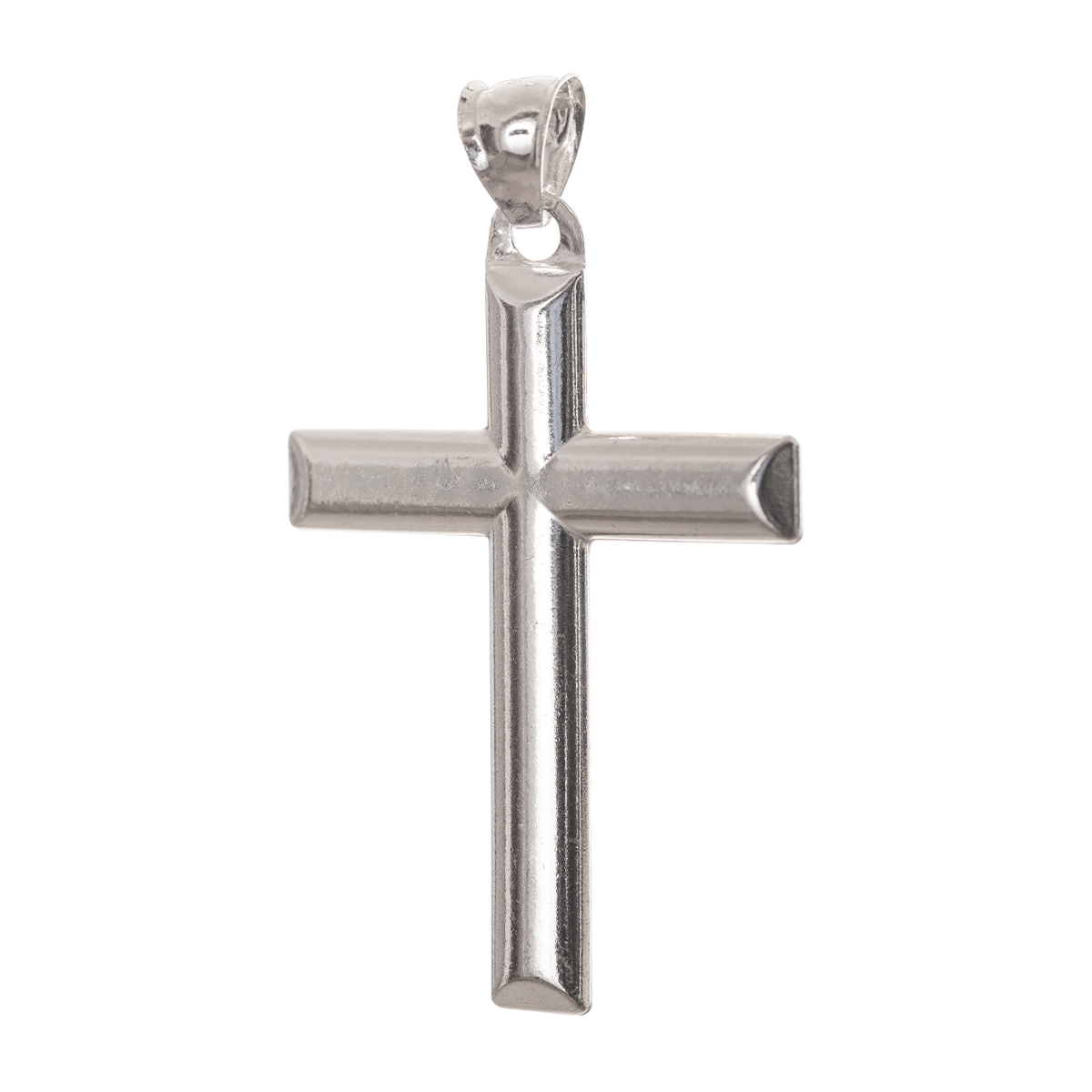 Σταυρός κατασκευασμένος από ασήμι 925, σε μεγάλο μέγεθος. Ο σχεδιασμός του είναι λιτός και κομψός με καμπύλες επιφάνειες που εντείνουν ακόμη περισσότερο την λάμψη της λουστρέ επιφάνειας. Ο κρίκος εξάρτησης είναι αρκετά ευρύχωρος ώστε να χωρά σε διαφορετικα μεγέθη αλυσίδας.